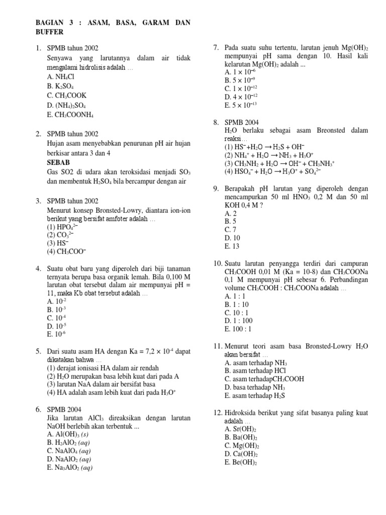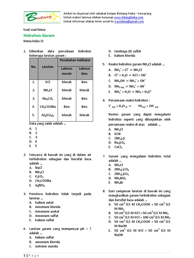 Contoh Soal Kimia Tentang Hidrolisis Docx Document